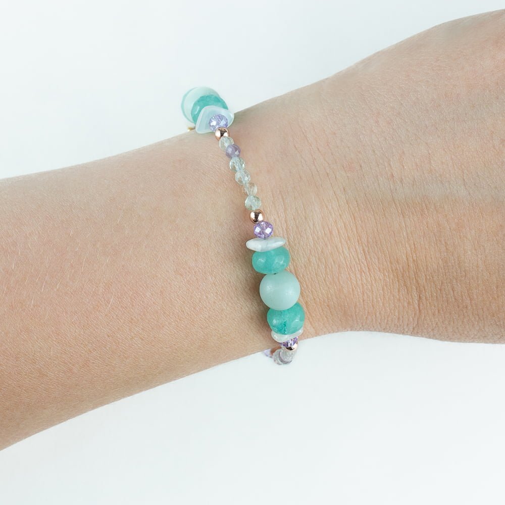 Chrysoprase, Amazonite, Moonstone and Fluorite Semi-Precious Gemstone Beaded Bracelet