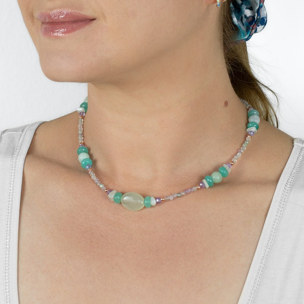 Jade, Chrysoprase, Amazonite, Moonstone and Fluorite Semi-Precious Gemstone Beaded Choker